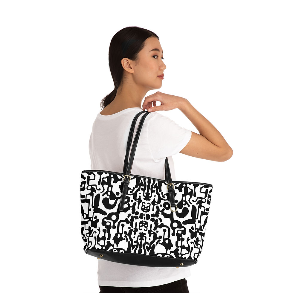 Retro Bauhaus 50's Abstract Black and White PU Leather Shoulder Bag - Two Sizes