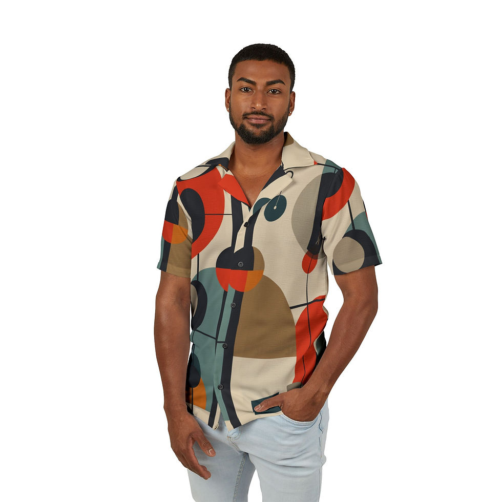 Retro 50's 'Shapes' Abstract Men’s Hawaiian Camp Shirt | Trendy Summer Fashion