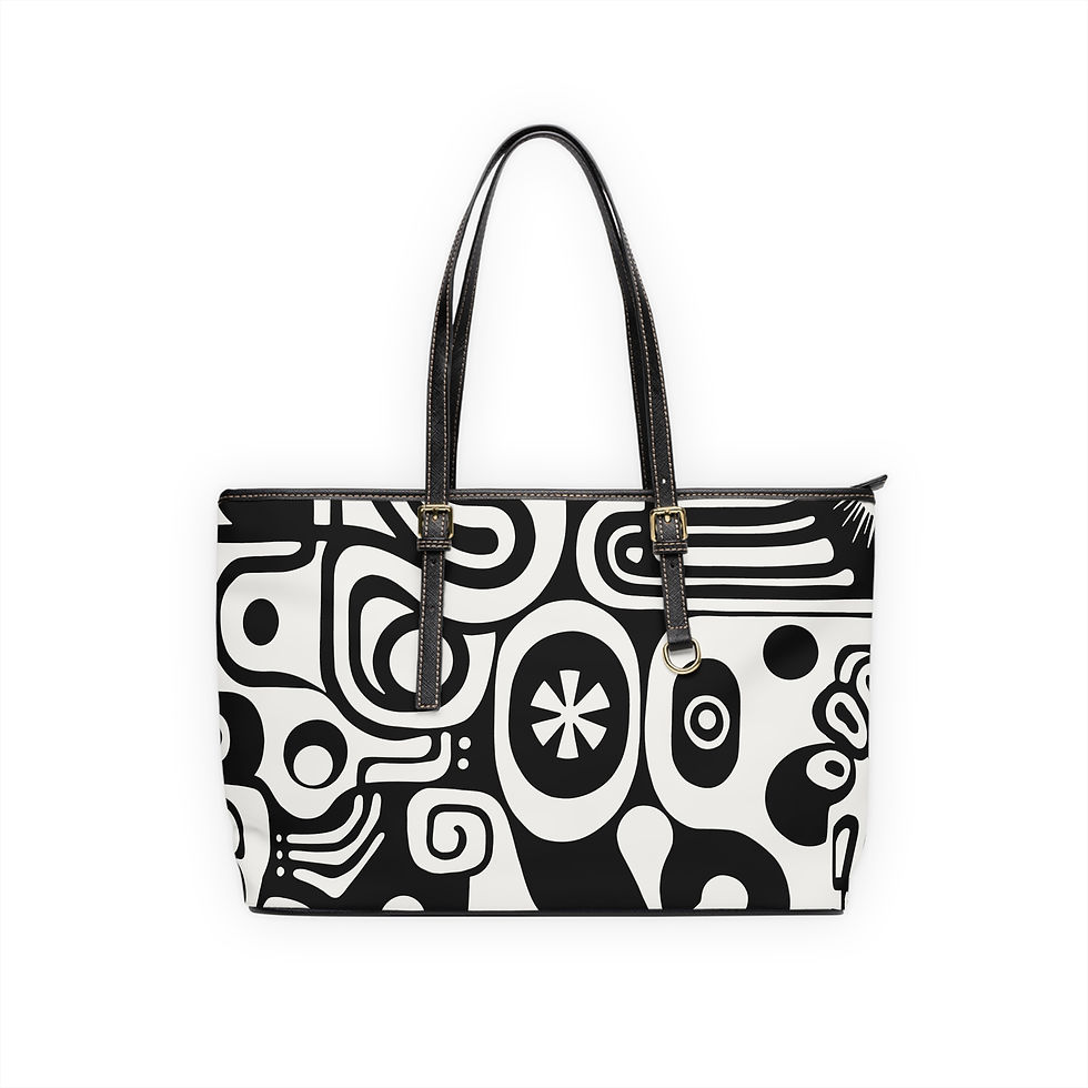 Retro Bauhaus 50's Abstract Black and White PU Leather Shoulder Bag - Two Sizes