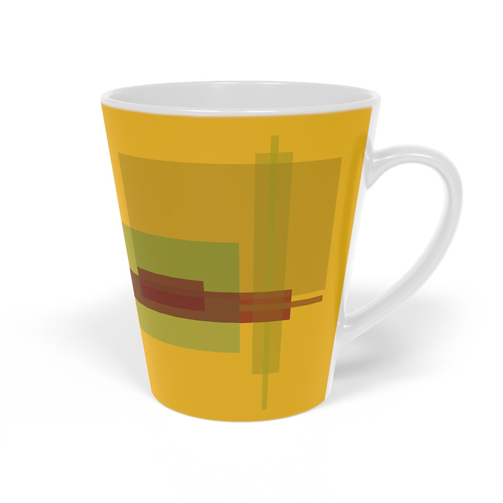 Retro 'Lines and Blocks' Yellow Latte Mug - 12oz Coffee Cup for Cozy Moments