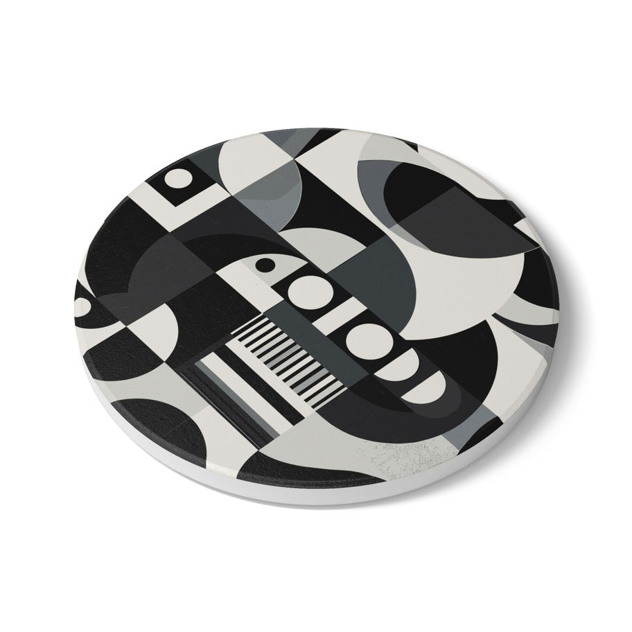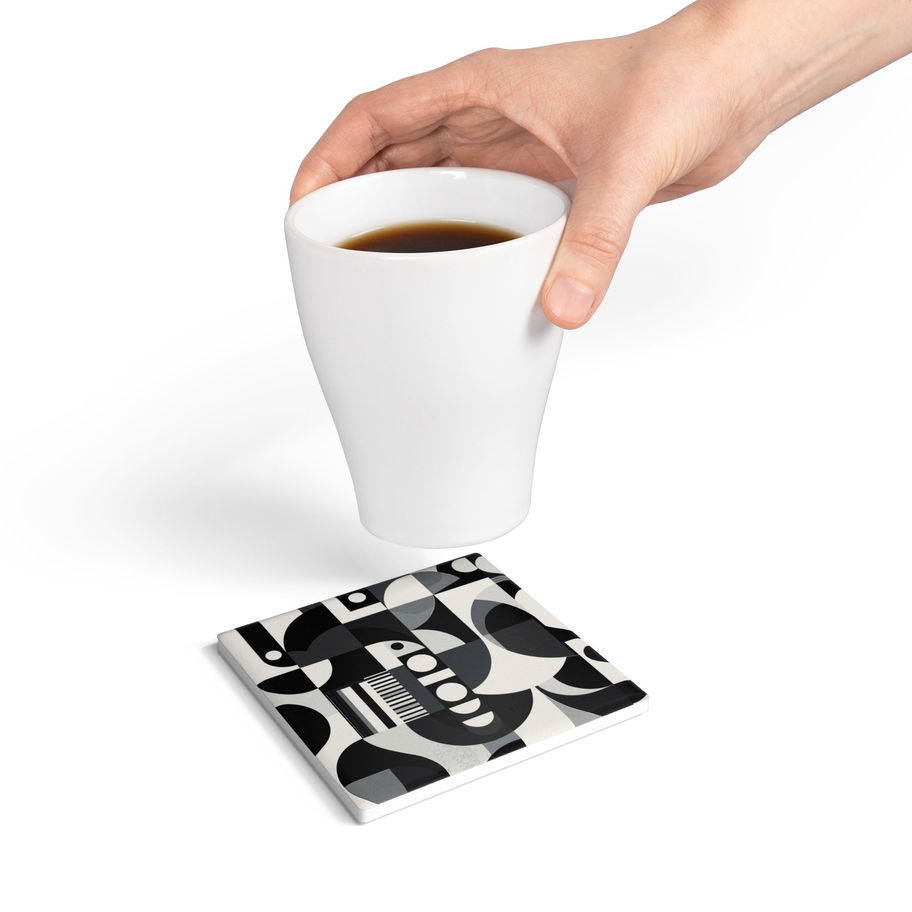 Retro Bauhaus 50's Abstract Black and White Ceramic Coaster
