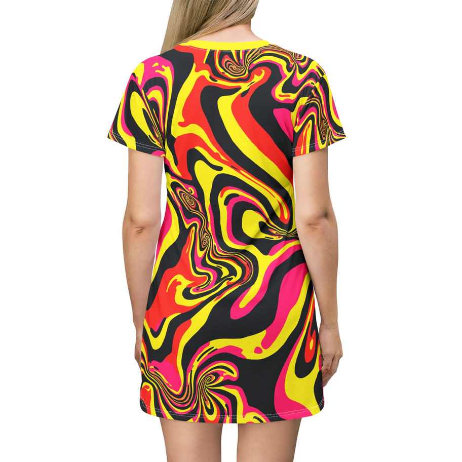 This retro 60's psychedelic T-shirt dress exudes a fun and vibrant vibe, perfect for casual wear or as a statement piece. Ideal for those who love vintage-inspired fashion and want to stand out in a crowd. Perfect for music festivals, retro-themed parties, and everyday summer wear.