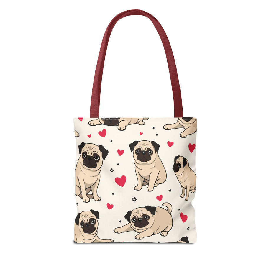 Introducing our stylish 'Pug Love' Tote Bag, perfect for those who appreciate both functionality and flair. This tote exudes a modern vibe, effortlessly elevating your daily errands or casual outings. Made from durable 100% polyester, it’s built to withstand the hustle and bustle of everyday life while keeping its shape. Ideal for busy professionals, students, or anyone on the go, this bag is a versatile companion for shopping trips, gym visits, or weekend getaways. With its elegant design and ample space, it’s perfect for holidays and celebrations like birthdays or back-to-school season, making it a thoughtful gift for loved ones.