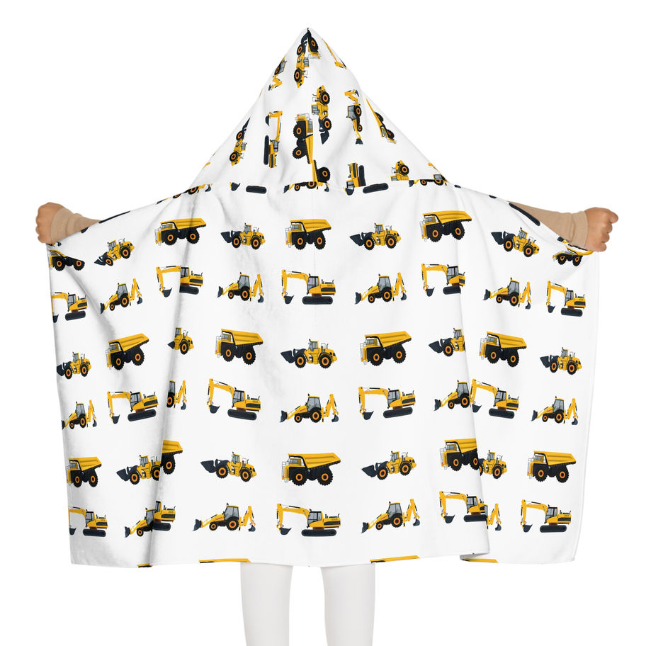 'Diggers and Trucks' Youth Hooded Towel – Perfect for Beach Days & Bath Time