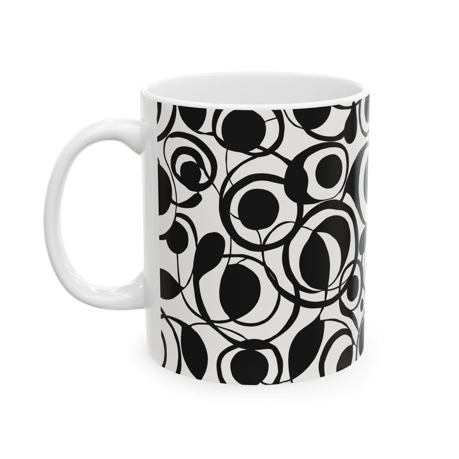 Introducing our Retro 50's Black and White Circles Ceramic Mug, perfect for adding a splash of color to your morning routine. With its glossy finish and bold patterns, this mug brings energy and liveliness to your kitchen or office space. Whether you enjoy a steaming cup of coffee, tea, or hot chocolate, this mug ensures you drink in style. Ideal for creative individuals or anyone looking to brighten up their day, it’s a wonderful gift for birthdays, holidays, or just because. Celebrate your love for art and uniqueness with this eye-catching piece that makes each sip a delightful experience!