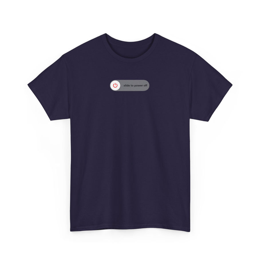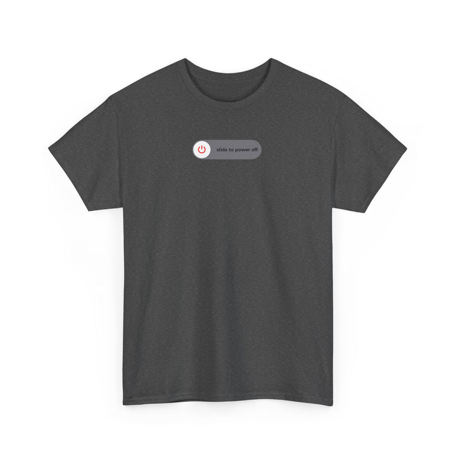 Power Off Unisex Tee, using the mobile phone power off screen button in a witty way. This tee gives off a modern and fun vibe, perfect for tech-savvy individuals looking for a unique and playful addition to their wardrobe. Ideal for casual wear or as a conversation starter at social gatherings.