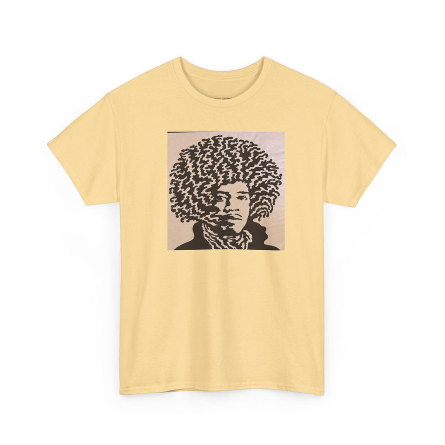 Jimi Hendrix mono-print Tee in various colors, perfect for music enthusiasts and retro style lovers. This unisex tee offers a comfortable fit and classic look that can be worn casually or semi-formally. Ideal for holidays and music-related events.