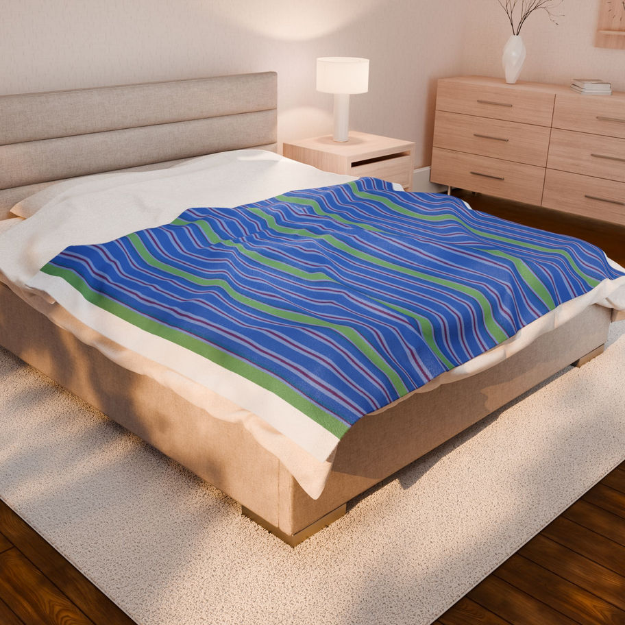'Deck Chair' Stripes Blue Velveteen Plush Blanket - Various Sizes