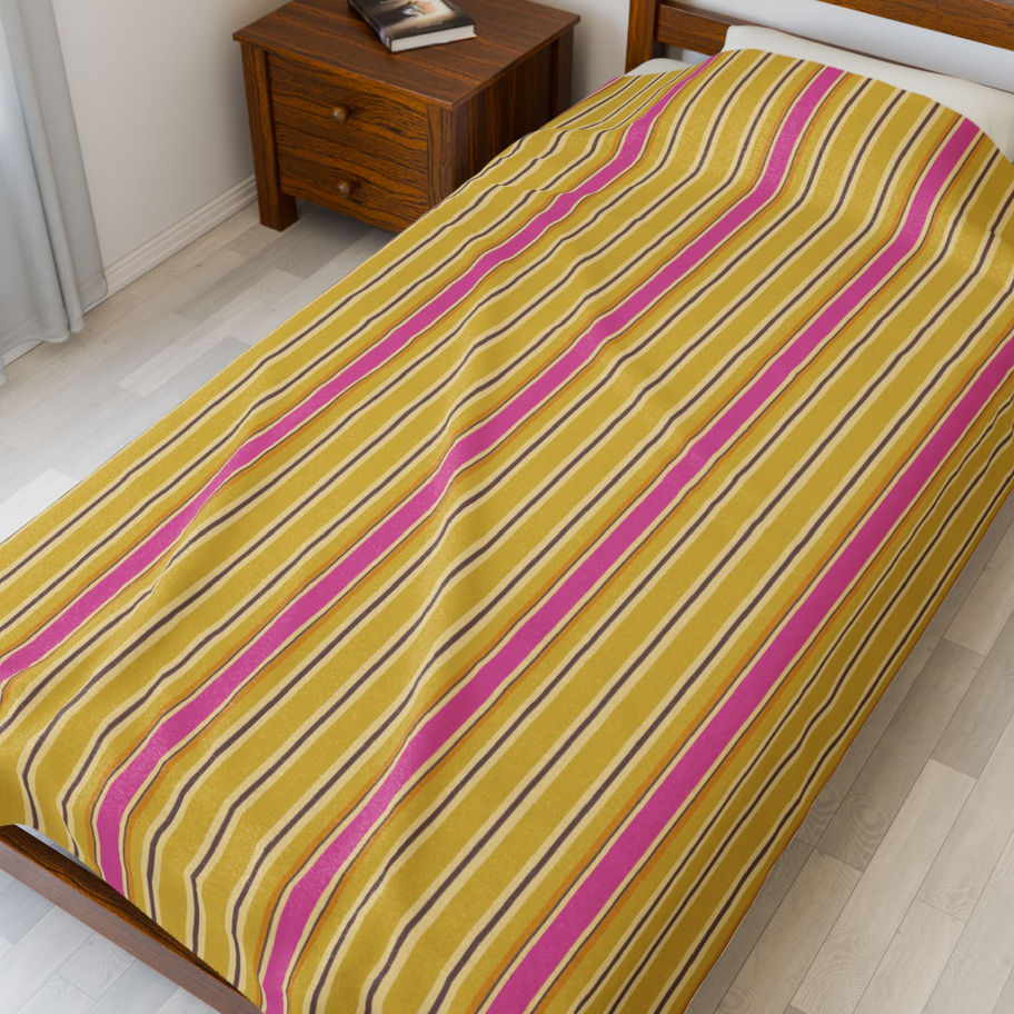 'Deck Chair' Stripes Yellow Velveteen Plush Blanket - Various Sizes