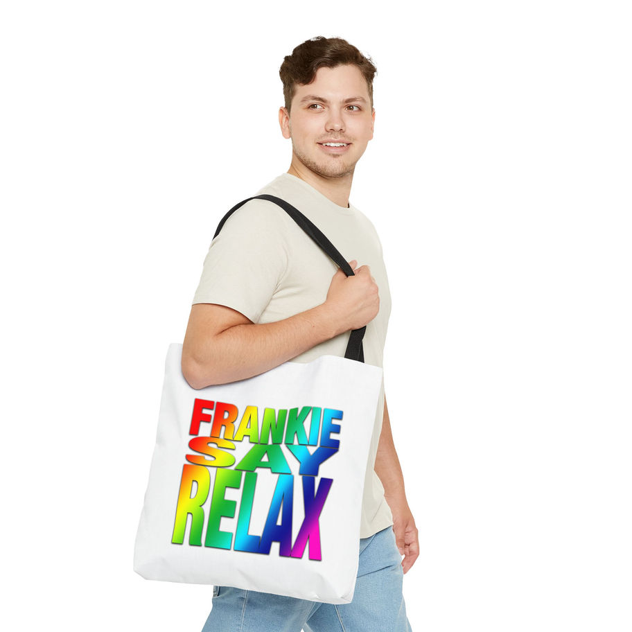 Introducing a stylish and versatile Frankie Say Relax Pride tote bag that adds a touch of personality to any outfit! This eye-catching accessory is perfect for shopping trips, beach days, or everyday errands. Made with a durable 100% polyester body, it offers both strength and a lightweight feel. The chic, minimalist design makes it suitable for fashion enthusiasts and practical individuals alike. Whether you're gifting it for a birthday, celebrating a holiday, or looking for the perfect addition to your summer wardrobe, this tote bag fits seamlessly into any lifestyle. Ideal for anyone who values style and functionality, it's perfect for students, professionals, or anyone on the go!