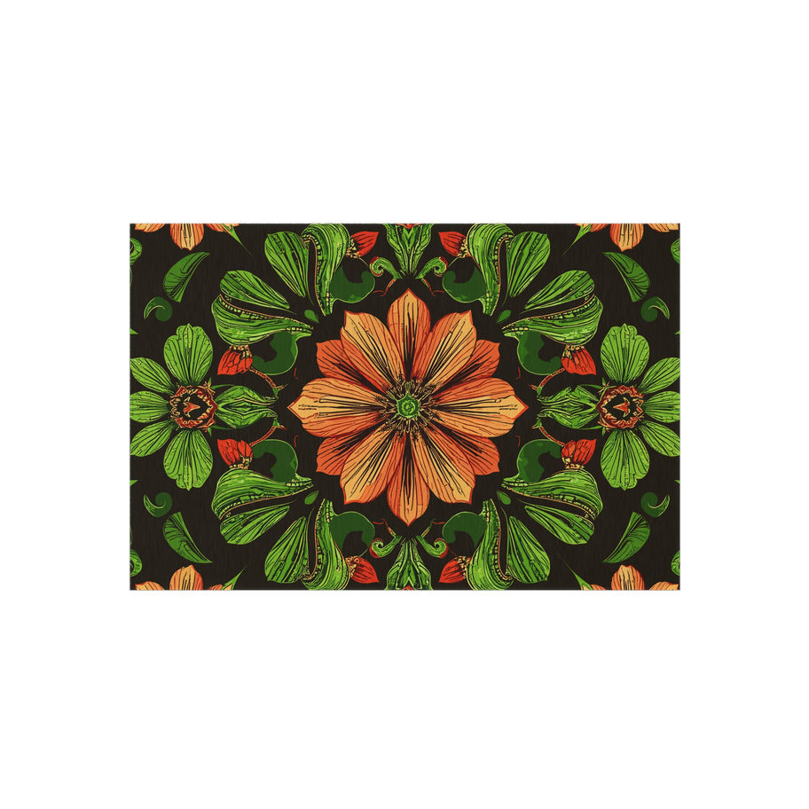 Green and Orange Flower Print Stylish Outdoor Rug - For Patios and Decks