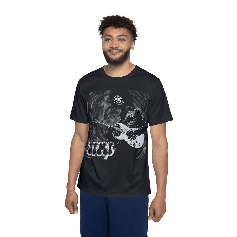 A Jimi Hendrix Black Jersey for men, perfect for any sports enthusiast or music lover. This jersey gives off a cool and edgy vibe, ideal for casual wear or gym sessions. Relevant for music festivals, sports events, and everyday activities.