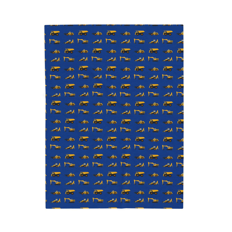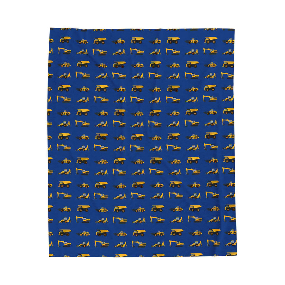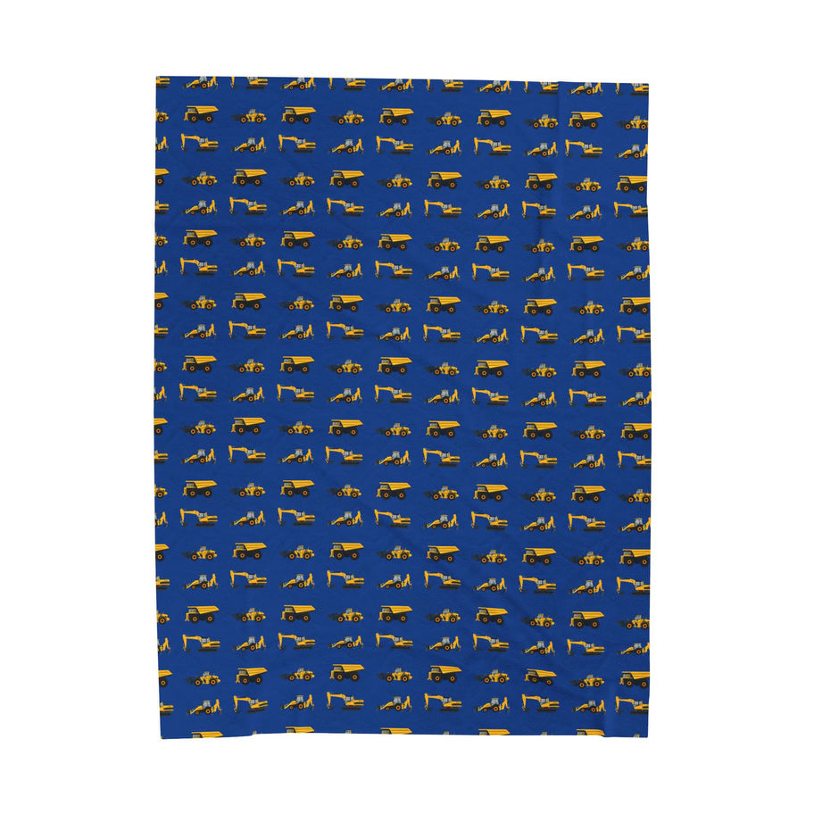 Kid's Diggers and Trucks Blue Velveteen Plush Blanket - Various Sizes
