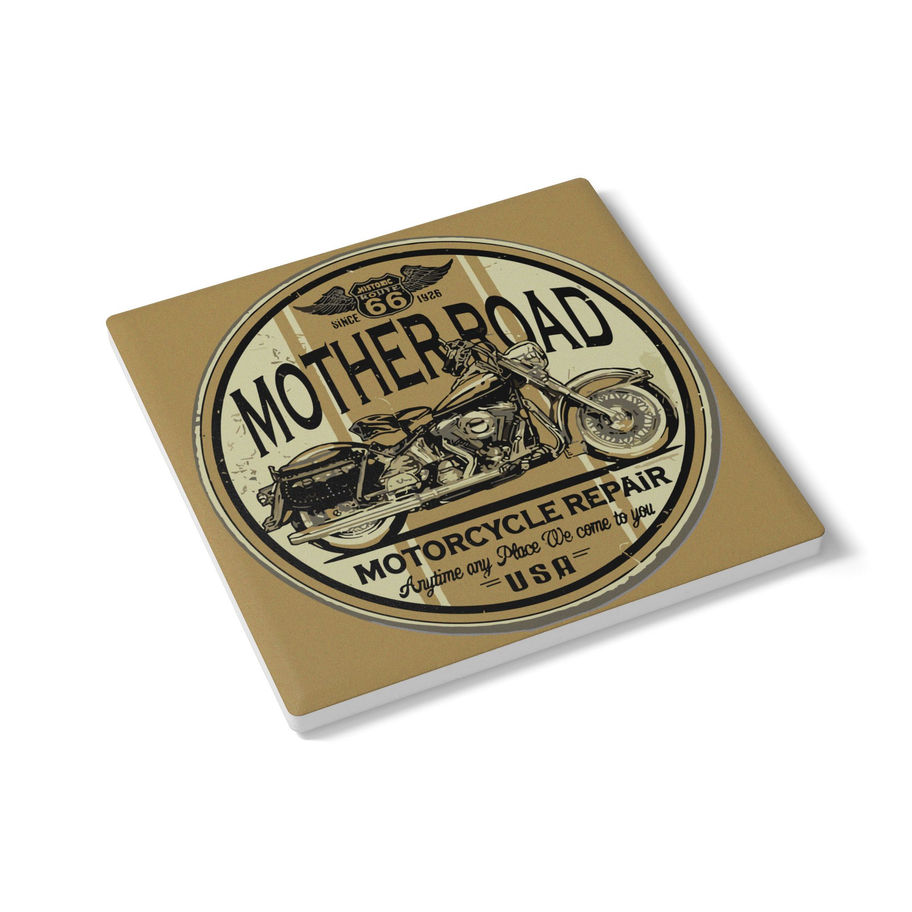 Mother Road 'Motorcycle Repair' Yellow Ceramic Coaster