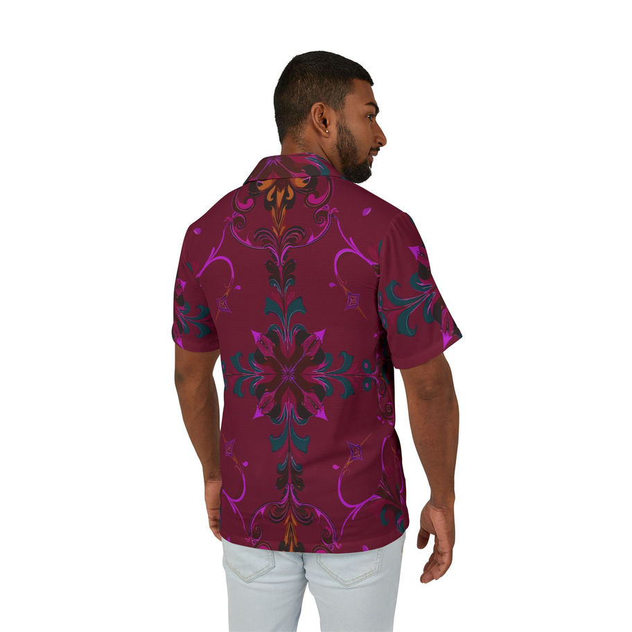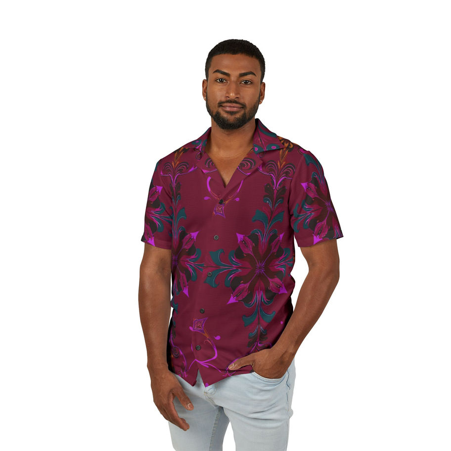 Red 'Flourish' Men's Hawaiian Camp Shirt - Tropical Vibes for Summer Escapes
