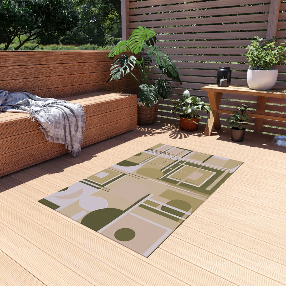 Retro 50's Yellow Abstract' Outdoor Rug for Patios and Decks - Various Sizes