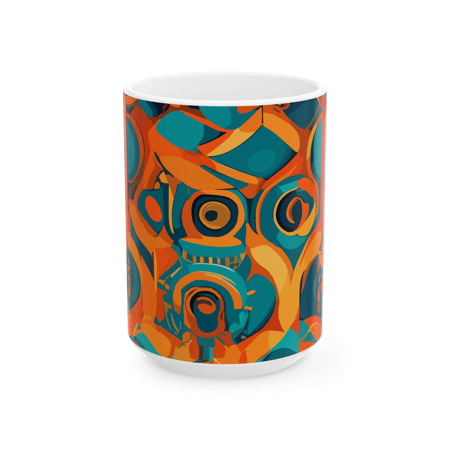 Retro 60s Orange and Blue Ceramic Mug - 11oz & 15oz