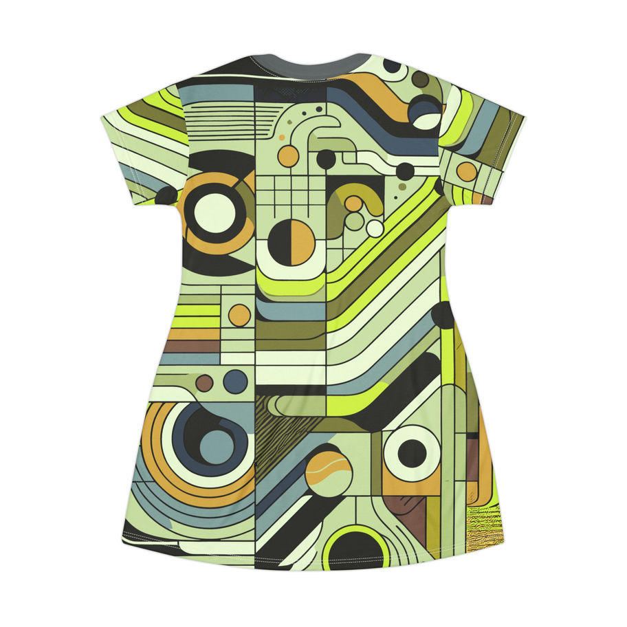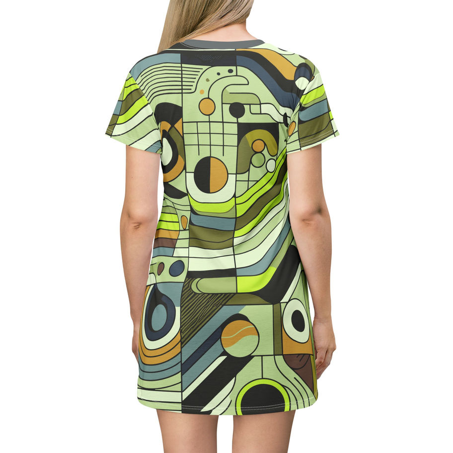 Retro Abstract No.1 Lime T-Shirt Dress - Stylish Casual Wear for Everyday