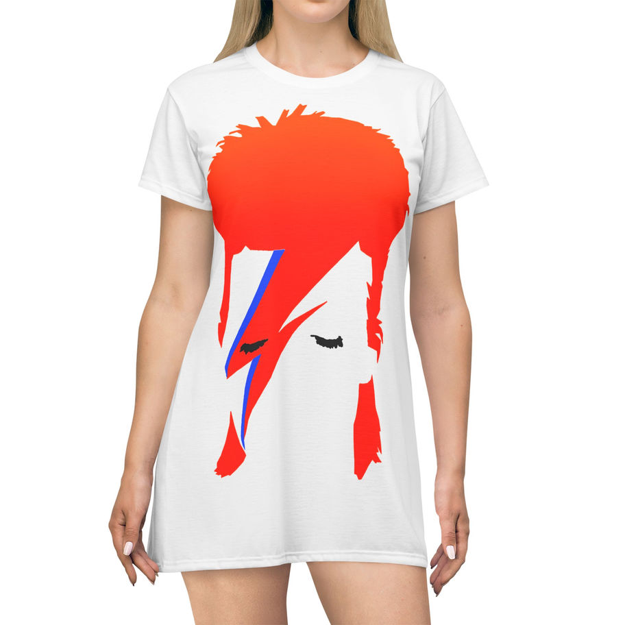 Retro Bowie Aladdin Sane Graphic White T-Shirt Dress - Iconic Music Style