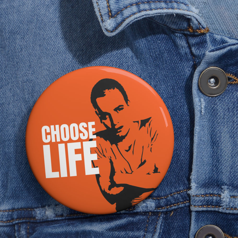 Trainspotting Choose Life Pin Button. Made from metal, yet are lightweight and durable with a strong safety pin.