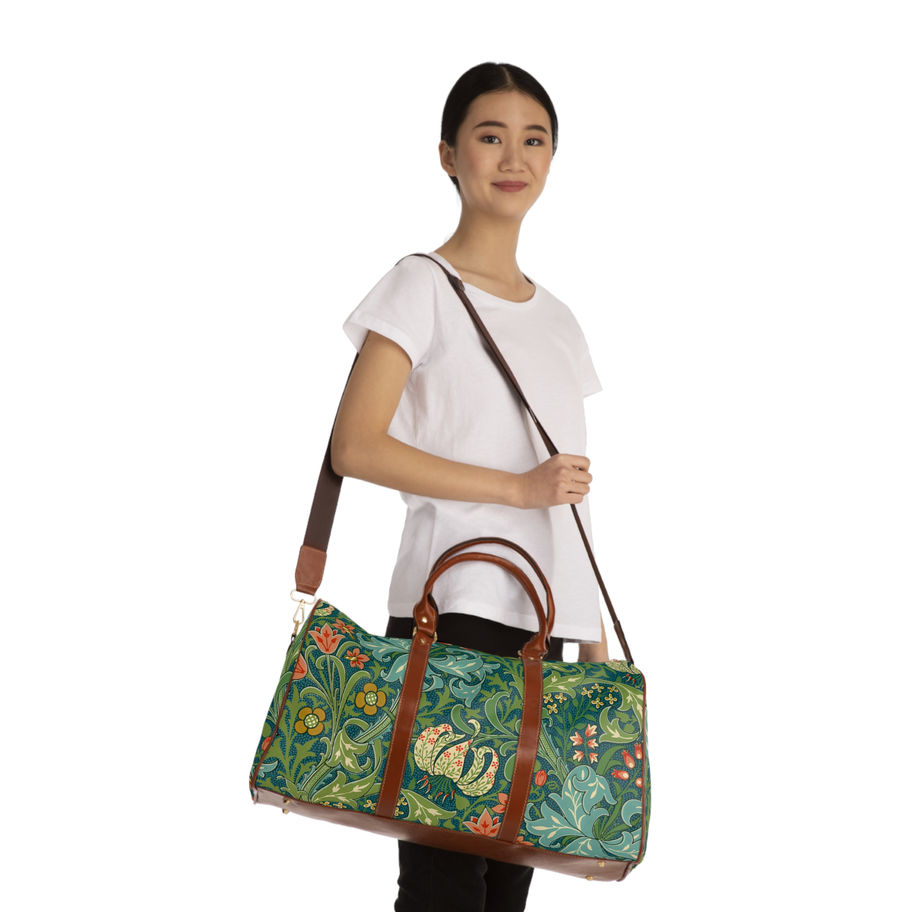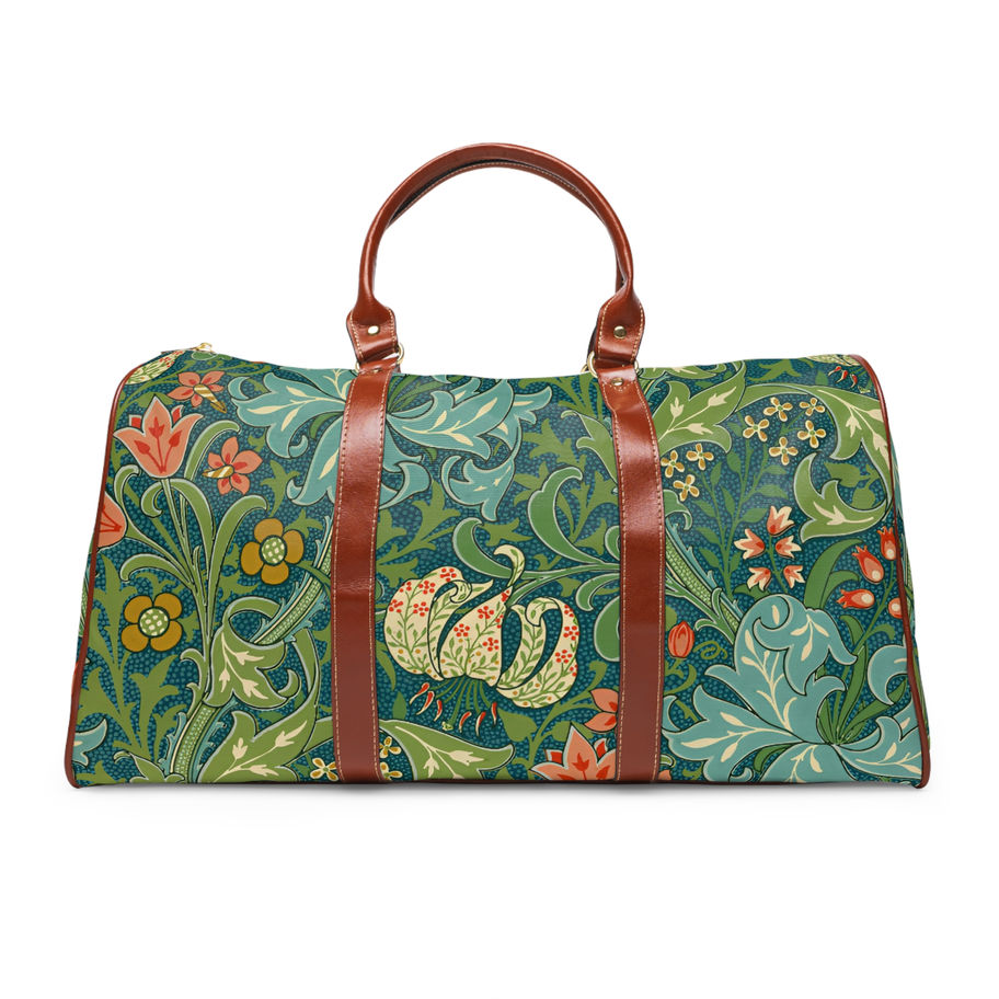 William Morris 'Golden Lily' Waterproof Travel Bag, Stylish Brown Straps