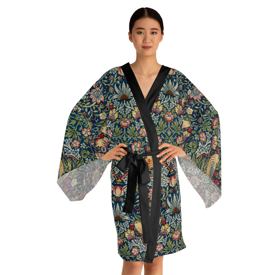 William Morris 'Strawberry thief' Long Sleeve Kimono Robe, Sleepwear, Bohemian